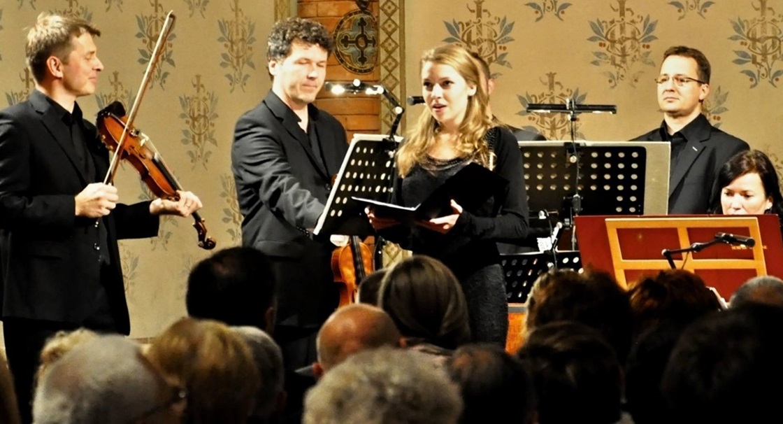 During a rehearsal at the Piarist Church, Litomysl, for the following day’s all-Baroque concert, Patricia sings