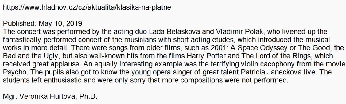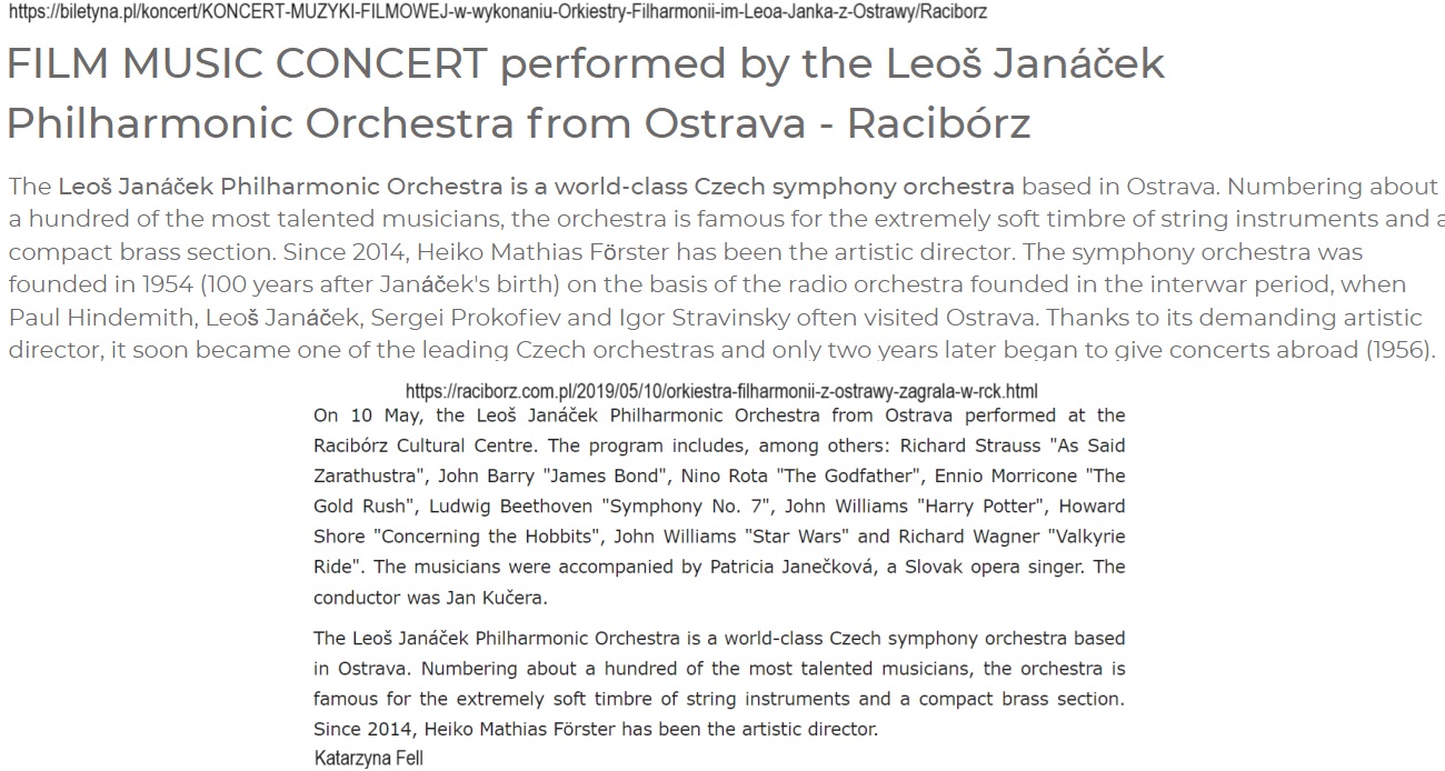 ‘Music in Film’ concerts, with the Janacek Philharmonic Ostrava, Jan Censky and ↑Martin Chodur1 2 3 4 5