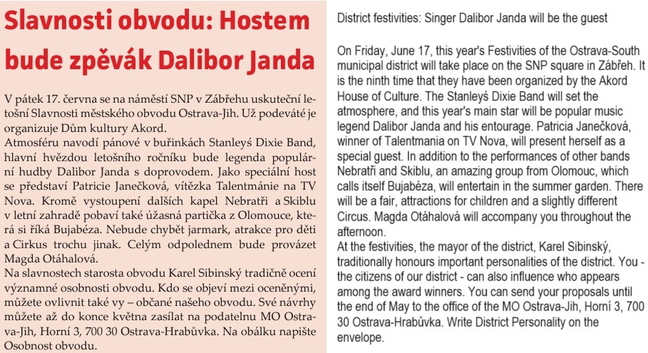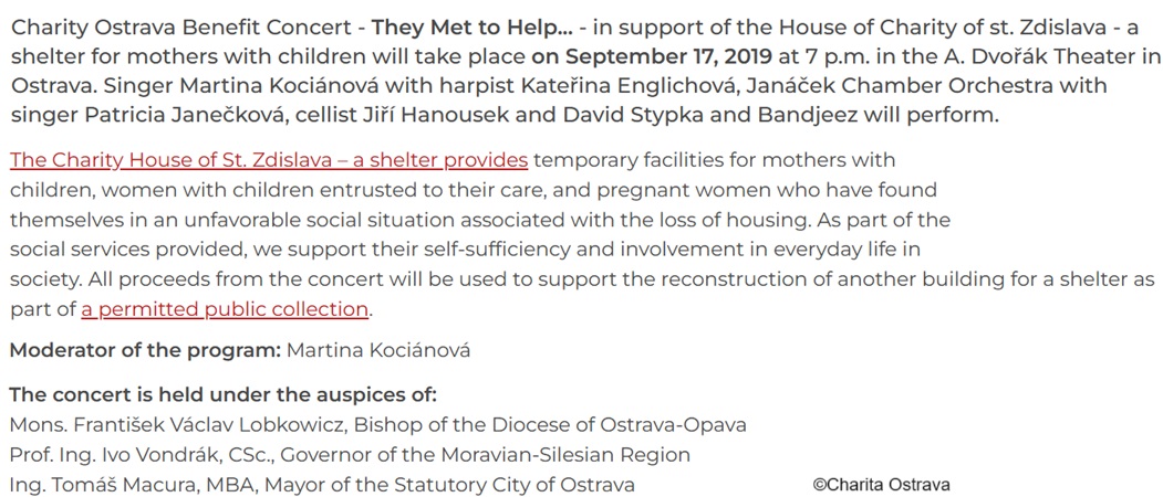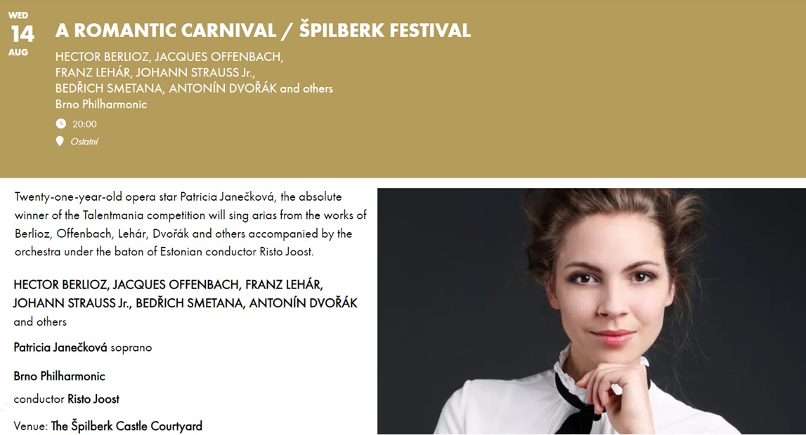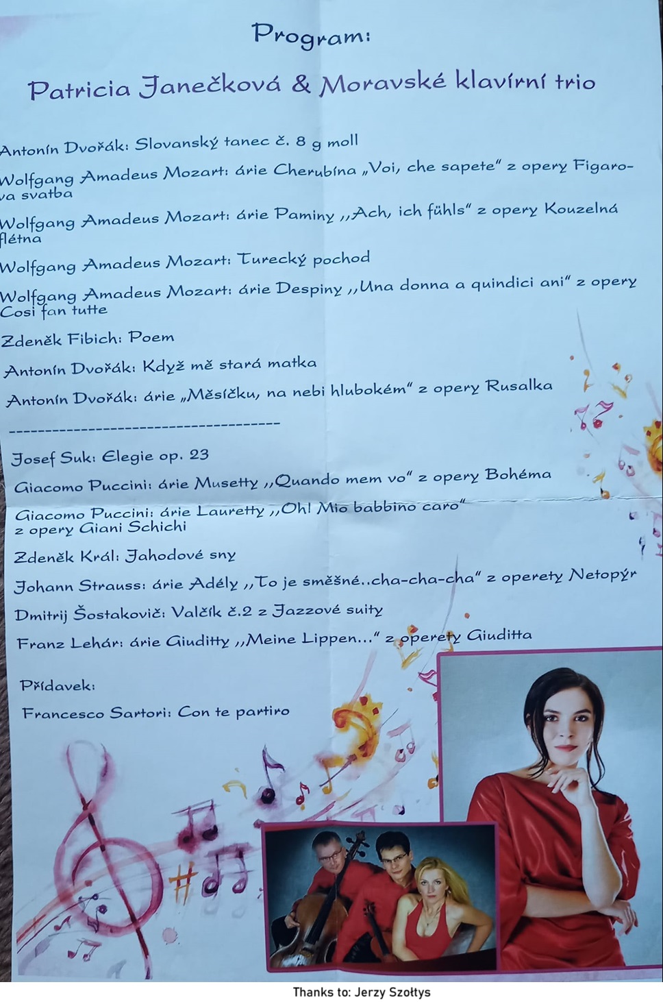 Images ©Patricia Janeckova-official profile [Facebook], Hanout Photography, Bellevoice production, Anopress IT, Janacek Philharmonic Orchestra, Agency GRO, Vladimir Salzer, Ostrava-Zabreh Catholic Church, Lutz Griesbach, TV Noe, Jahid30 freepik.com, Dusan Kittler, National Moravian-Silesian Theatre, Branislav Simoncik, Divadlo Mir, South Czech Philharmonic Orchestra, ceskatelevize.cz