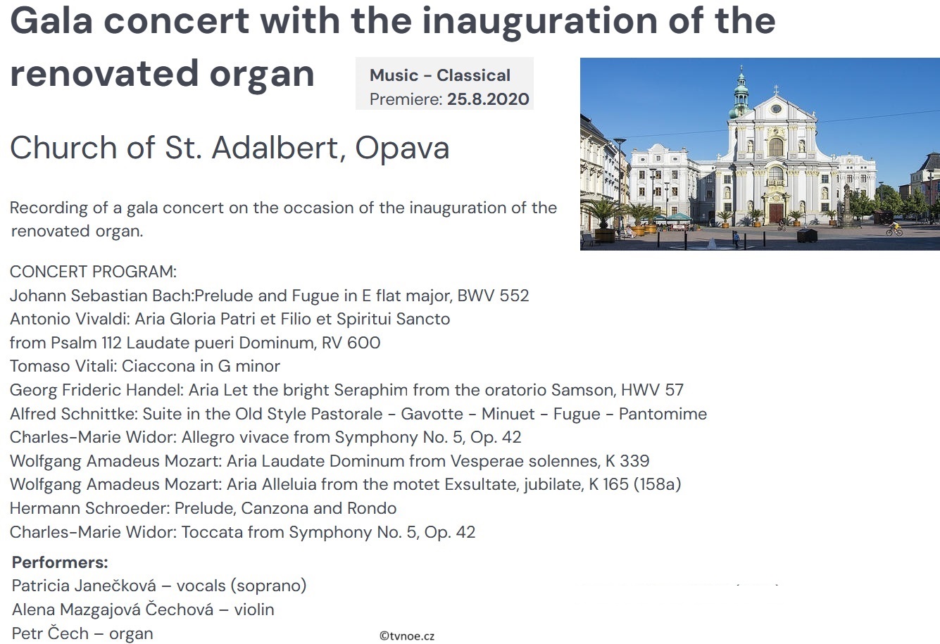 Online benefit concert1 for the purchase of a church organ; with Sarka Adamikova, flute; Pavel Dolezal,