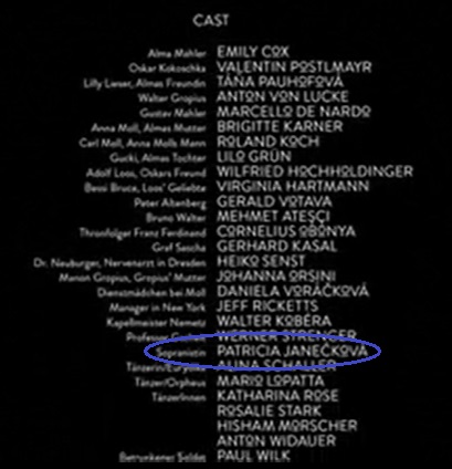 Performance {‘Sopranistin’} in the movie ‘Alma und Oskar’ 1 [Scene set in Semmering, Austria; 1914]