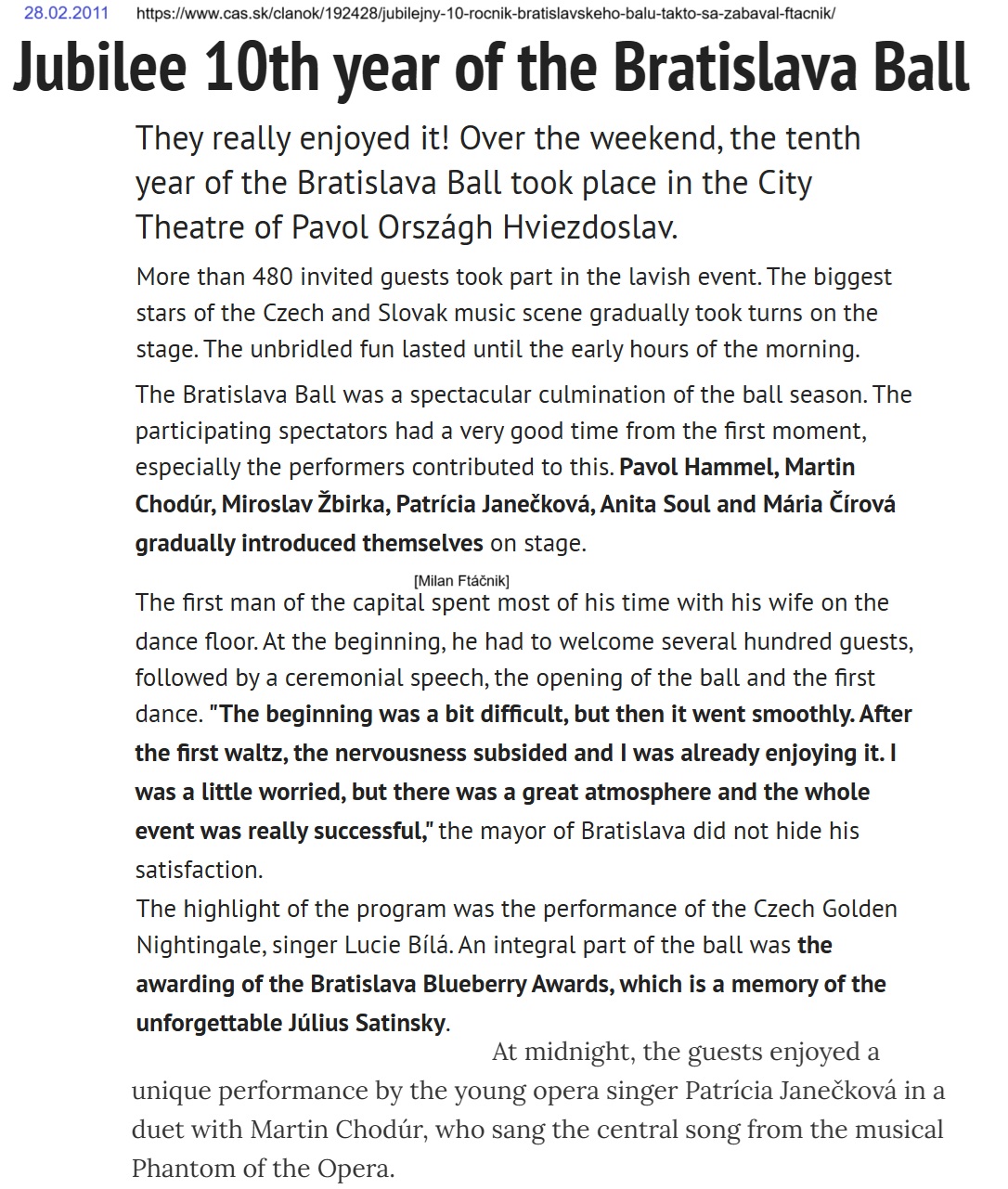 Midnight performance at the culminating event of the Bratislava Ball season1