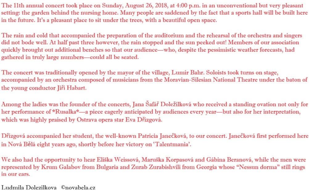 The programme1 2 featured ‘popular compositions by Czech and world composers’ – no further details