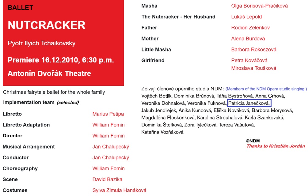 Performances with the Opera Studio (NDM) in The Nutcracker1